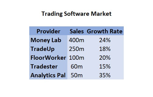 The candidate can note that both the analyst-support and trading markets are promising sources of revenue growth, with the trading software being more promising for offering higher profit margins.