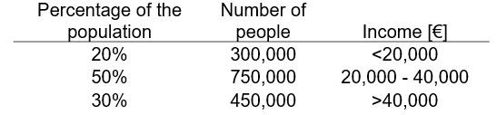 Considering that FoodDelivery is a first mover in the sector (thus having no competitors), the interviewee should assume that 1/3 of the people within the highest income range would order food through the app once a week. In order to be conservative, we are going to assume that nobody from the other income ranges is interested in the service. This will also compensate the fact that not all people who turned out to be “interested” according to the market research will actually use the service.