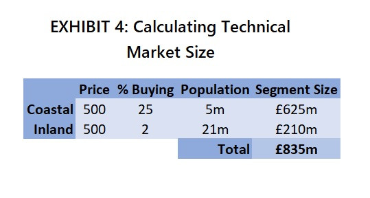 Market Size = (25% x 5m x £500) + (2% x 21m x £500) = £625m + £210m = £835m