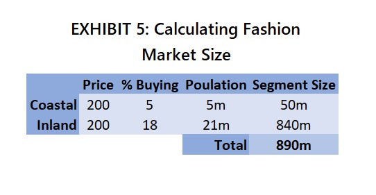 Next, the candidate should establish whether Harbour receives a greater fraction of its revenue from technical or fashion jackets. To do so, the candidate must calculate the market size for sailing-style fashion jackets.