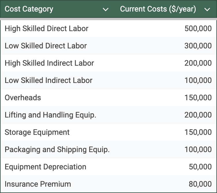 - What are the primary costs associated with your warehouse operations (e.g., labor, equipment, maintenance)?