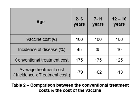 - The vaccine is administered in 3 doses at 6 month intervals. All the three doses together costs 100 € for the patient.