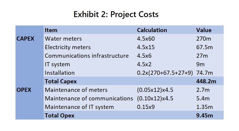 New capex = electricity meters + comms infrastructure + IT system + new installation costs
