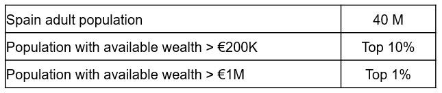 AUM Affluent segment = 40 M × (10% - 1%) × average (€200k, €1M)* = €2,160Bn